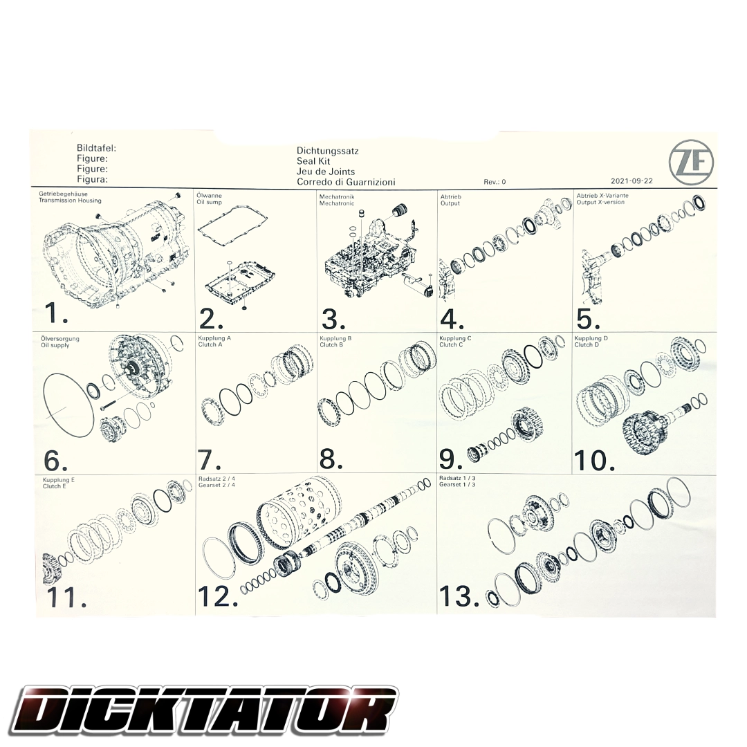 Home / 8HP Transmissions / 8HP Rebuild Parts / Genuine ZF Rebuild Seal Kit Genuine ZF Rebuild Seal Kit This product is currently out of stock and unavailable. SKU: N/A Category: 8HP Rebuild Parts Product ID: 10532 Additional information Additional information Size Medium, Large Related products Alto Power Kit R30,000 Add to cart Extreme Duty Billet E Hubs R15,000 – R17,500Price range: R15,000 through R17,500 Details This product has multiple variants. The options may be chosen on the product page 8HP70/75/76 Upgrade D Drum R7,500 – R9,500Price range: R7,500 through R9,500 Details This product has multiple variants. The options may be chosen on the product page Oil Seal Torque Converter R300 Add to cart